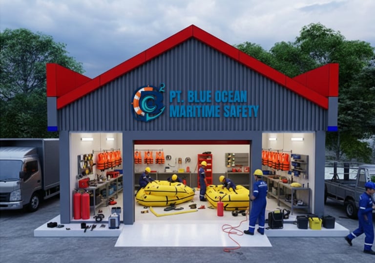 PT Blue Ocean Maritime Safety is a maritime service company providing vessel safety equipment services, ship machinery maintenance, and marine technical support. The company is part of the maritime ecosystem with a strong focus on enhancing safety standards, technical competence, and operational compliance of vessels.
