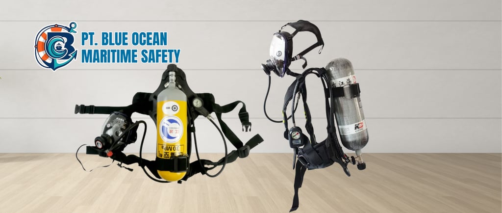 Self Contained Breathing Apparatus (SCBA) supplies clean breathable air to firefighters operating in smoke-filled or oxygen-deficient environments. SCBA units are essential for engine room and enclosed space firefighting and must comply with SOLAS and IMO fire safety regulations.